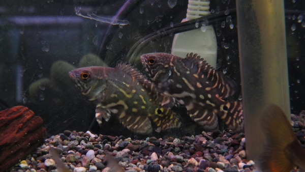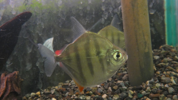 超激レアのメチニスが入荷しました!この種のメチニスは国内に入荷したのが4~5年ぶりで、今回の産地は初入荷です!!タイガーメチニスの名前の通り縞模様がはっきり入り、大きくなってもこの模様は残ります。成長すると20cmくらいになるそうです。似た種類でバンデットメチニス(これも珍しい魚でたぶん3年くらい輸入されてないかと思います)と呼ばれるやはり4本くらいバンドが入るメチニスがいますが、バンデットの体型が普通のメチニスに近いのに対し、タイガーはかなりのハイボディで体高の高さが目立ちます!輸入元の問屋によるとこの魚は今回限りの入荷になりそうで次回はいつ輸入できるか分からないそうです。しかも今回国内に輸入されたのはたった6匹だけで大変貴重な魚です。当店に入荷したのは2匹だけですのでマニアの方はお早めに!!