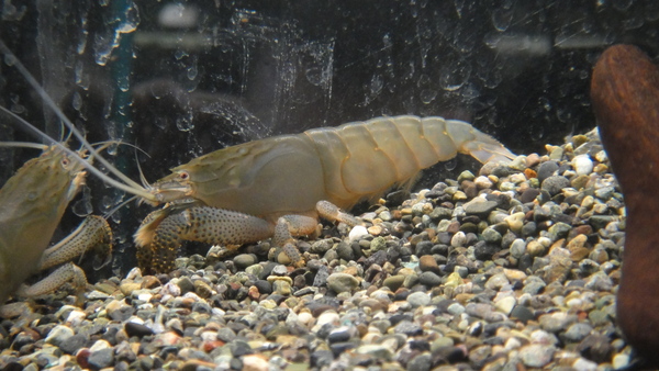 見た目がいかついエビなんで小魚とかを襲って食べてしまいそうな感じですが実はとっても大人しく魚にはまったく悪さをしません!プランクトンフィーダーで、ハケ状の足で水中のプランクトンや有機物を濾しとって食べているらしいです。ですが、他の魚と混泳させているとこれといって餌をあげなくてもいつのまにか脱皮していつの間にか大きく成長してたりします。けっこう大きくなりますよ!