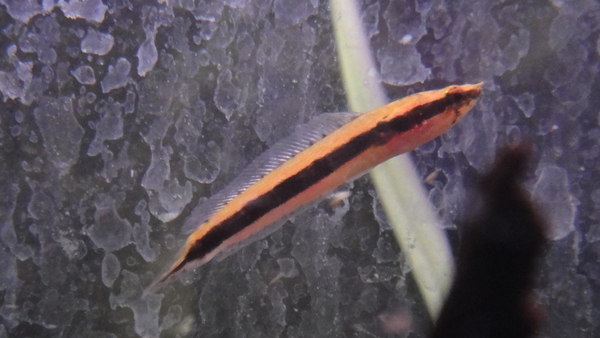 レッドアイカラシンなんて仕入れたのはどれくらいぶりだろう??久しぶりに見たからなのか、ものすごく新鮮な感じでこの魚のキレイさをあらためて実感しました。ですが、なんかイメージしてたレッドアイカラシンと少し違うような気がします。なんか全体的に色が濃くて、臀ビレにオレンジの縞模様があります。レッドアイカラシンってこんな魚でしたっけ??すいませんこういうキレイ系の魚にはあまり強くなくて・・・。