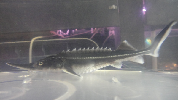これはもしかしたら当店初入荷かも??とても珍しいチョウザメで、中国から朝鮮半島の東シナ海沿岸に分布する魚です。チョウザメの仲間は成長すると河川を下り海に出ることが多いのですが、そのためにこの魚も海で迷子になってしまい、迷魚として東京湾で捕獲された記録も残っているそうです。90年代に入ってから観賞魚として日本に輸入されるようになりましたが、ここ10年近くはほとんど輸入されていないのではないでしょうか??現地ではしっかり繁殖されているのですが野生での個体数はかなり減少しているらしく、養殖した幼魚を放流するなどの対策もとれれているそうです。
