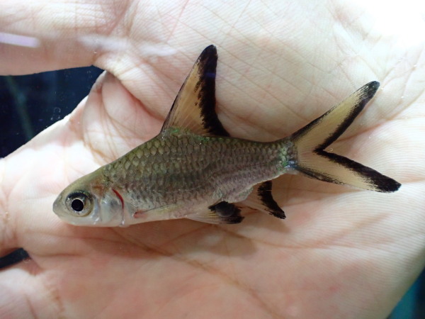 スーパーハイフィンバルブのインボイスで輸入されたレアなオステオブラマ属のバルブ。最大で20cm位になる種類ですが。大きくなると長い背ビレのカッコいい結構見応えのある魚になります。入荷は1匹のみ!マニアの方はお見逃しなく!右上の画像です。