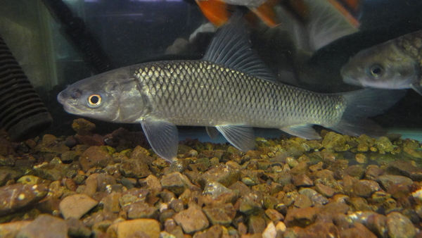 なんかすごいかっこいい名前ですね。クロコダイルでシャークなんてどんな無敵生物だよ!!みたいな感じですが、実際は大人しそうな顔をしたコイの仲間です。完全に名前負けしてますね・・・。現状細身ですが、大きくなると体高が出てきてものすごっくごっつくなるらしいです。そして鼻先が伸びてきてジュゴンみたいな顔になると輸入元の社長は言ってましたがとっても珍しい魚らしく、私もそんなのは見たことがありません。かなり大きくなる種類だそうで、最大では80cmを超えるそうです。どこまでおおきくなって、どこまでジュゴン顔になるかは飼って育ててのお楽しみ!次回の入荷は未定です!