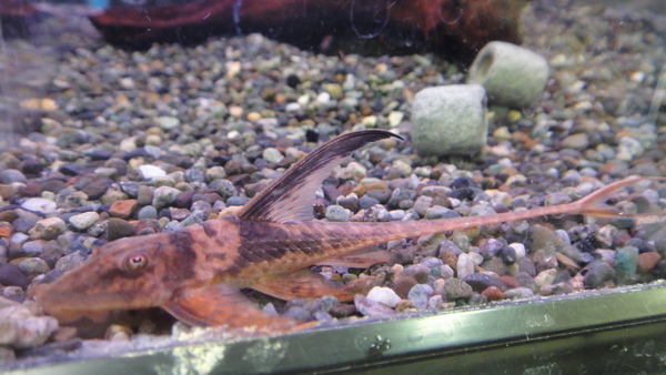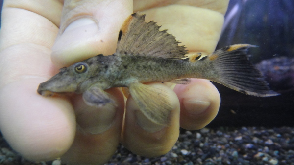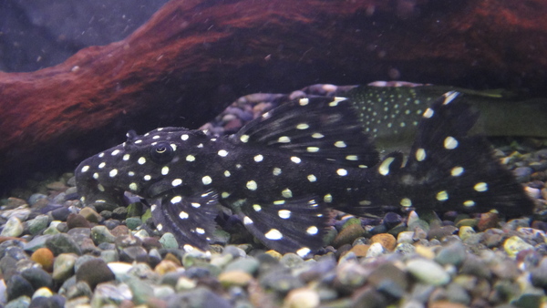 胸ビレが長く、全身の細かいスポットがキレイなプレコです!平べったい体型が特徴的です!