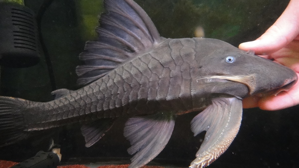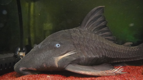 久しぶりに仕入れてみました。なかなかの大きさで迫力も十分です!この個体はオスということで胸ビレと頬(エラの辺り)の部分からトゲがびっしり生えていて超カッコイイです!ブルーアイプレコの名前で流通するプレコには2種類いることが知られていますが、今回入荷の個体はコロンビア産のPanaque cochlidonで、もう一種のベネズエラのマラカイボ産Panaque suttonorumよりも体高が出て、より大型になるとされています。まぁ、そう言ってもどっちも入荷は少ない激レアプレコですし、この仲間のプレコを水槽内でぐんぐん大きく育てるのは難しいでしょうから、大きくなるといったところであまり関係ないかも・・・。大きいのが欲しい人は最初から大きな個体を、小さいのが欲しい人は最初から小さい個体を入手すればいいというだけだと思いますが、ちょうどいいサイズが欲しい方はぜひ当店のブルーアイを!!