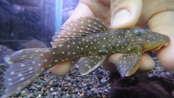 このスターライトグローボは大きめで立派です!スターライトグローボは本来20cm~25cmになる種類のプレコですが、大きいサイズが輸入されることは少なく、大型個体を目にする機会ほとんどありません。入荷するのは5~6cm位のばかりです。今回入荷した11cmの個体はこの種としては決して大型ではありませんが、それでも入荷するサイズとしてはかなり大きな方です!このサイズの素晴らしさを分かってくれるプレコマニアの方いませんか?きっといますよね!!