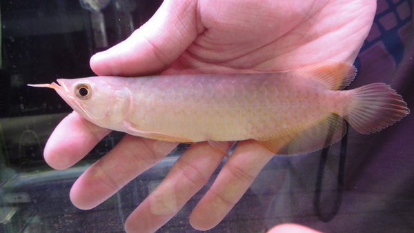 前回入荷のスーパーレッドは大好評で、即完売でしたので前回と同等のクラスのアロワナが再入荷です!今回の個体も前回同様にスプーンヘッドのかっこいい、将来の楽しみな個体です!このサイズでこの顔つきで、この価格なら大満足です!!画像の個体です。