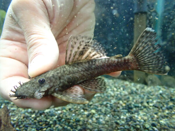 コロンビアからくるヒゲもじゃプレコです。まだ若い個体なのでそこまでもじゃもじゃじゃないですが、アダルトのオスは超もじゃもじゃで見応えありますよ!右上の画像です。