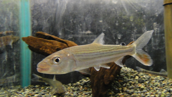 初めて見ましたが、まぁ珍しいには珍しいんでしょうけど地味な魚です。ガラの仲間はドクターフィッシュが有名ですが、このコンゴエンシスも口は吸い付くような口でコケなどを食べてくれます。