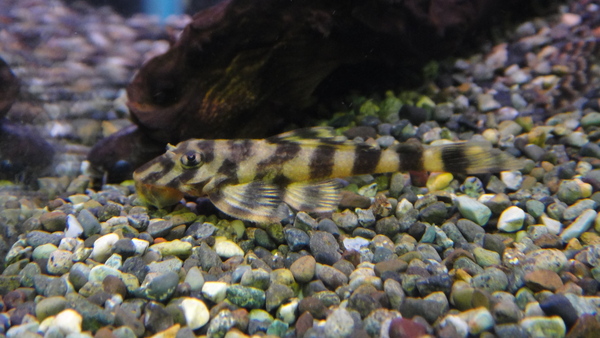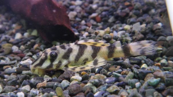 平べったいペコルティアです。体色が茶色っぽいのや黒っぽいのなどバリエーションがありますが、今回入荷したのは茶色っぽくて黒いバンドがしっかり入るタイプです。キレイな個体です。