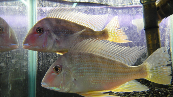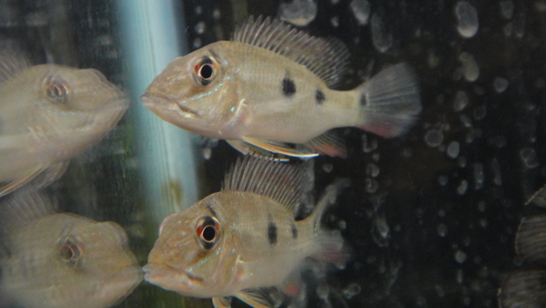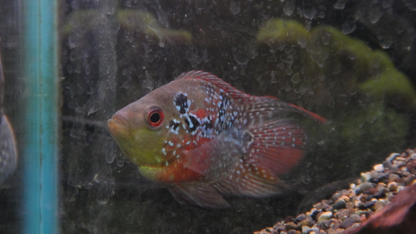 これは種類がわかりませんが、とにかくキレイなゲオファーグスです。名前の通り顔がうっすら赤く発色していてなんとも不思議な感じ。サイズも迫力満点の大きめで入荷しました!大型魚との混泳にもオススメです。パロットファイヤーみたいに掃除係として入れておくのもいいですね。