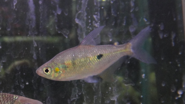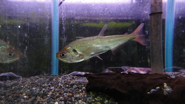 これもやはり中型カラシンですが、まだちょっと小さいですね。最大で20cmくらいになる魚で、ギラギラの鱗と長く伸びる背ビレがすごいゴージャスなキレイな魚になります。入荷は少ないので、オススメです!