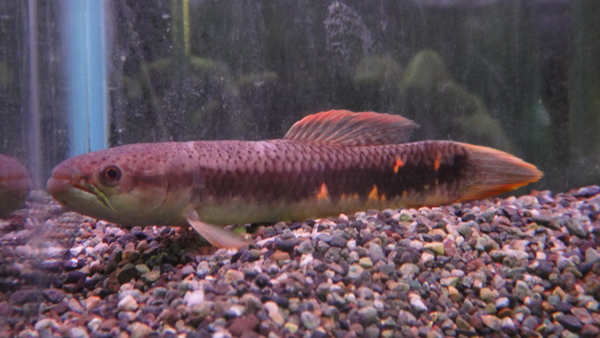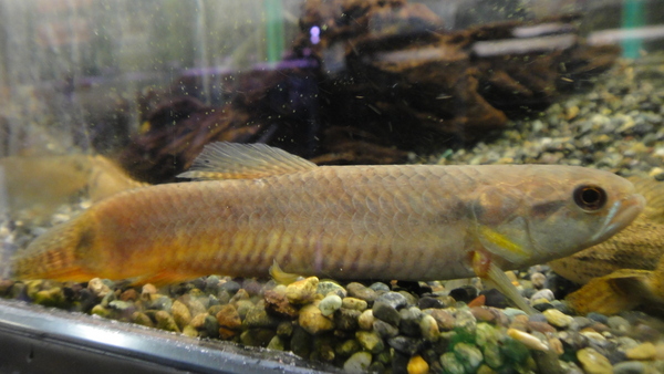 南米産の純淡水のカレイです。大きくなると50cmくらいになるそうですが、そんな大きいのは見たことありません。25cm位の個体は過去に入荷したことがありましたので、それ位にはなるはずです。それでも淡水カレイとしてはびっくりする位大きかったですけど。餌はメダカなどの小魚を好みますが、冷凍の赤虫なんかも普通に食べます。プレコと飼うのはやめましょう、プレコに舐められたり齧られたりします。