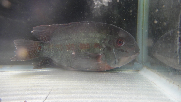 緑色のシクリッドです。ここまで濃い緑色の淡水魚って他にいないんじゃないでしょうか??昔はものすごく高い幻の魚だったんですけど、今ではけっこう一般的な魚になりましたね。値段も安くなってます!