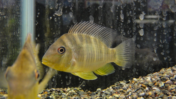 ベレン便で入荷したレガニです。こちらは間違いなくオスとメスなのでご安心を!メスは背ビレに黒い班が入るので雌雄の判別は容易です。パイクシクリドの精悍さと、アピストのような繊細さを持ち合わせたステキな魚です。普通のパイクシクリッドよりも混泳させやすく、繁殖も狙えるのでオススメです!小型プレコなどとも一緒に飼えます!下段左がオス、右がメスの画像です。