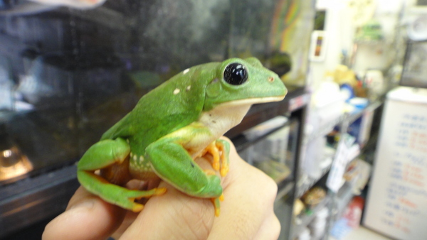 珍しいメキシコのツリーフロッグです。目に細かいスポット模様が入り、小さな星をちりばめたようなとってもキレイな目をした可愛いカエルです。乾燥気味にして飼育するのがコツで、ジメジメの湿気っぽい環境で飼わないようにしてもらえれば飼育は容易です!入荷は大変少ないです!