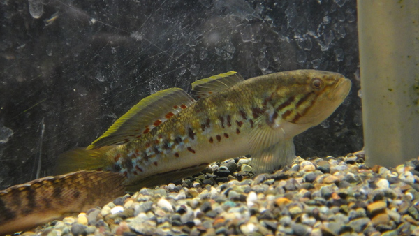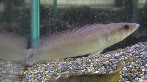 謎のパイクシクリッドの入荷です。現状、そんなに派手ではありませんが、腹ビレと臀ビレは青く光っています。婚姻色がでたりしたら化けるかも?多分ルグブリスグループの魚だとは思うのですが、ほんの少しですが、体側にダイヤモンドパイクのようなラメが見えるのと、顔が尖り気味なのでもしかしたらサクサチリスグループなのかも??後者ならそんなに大きくならないとは思うのですが、どうなんでしょうか??