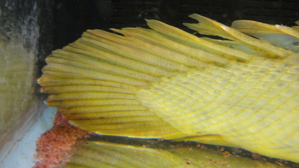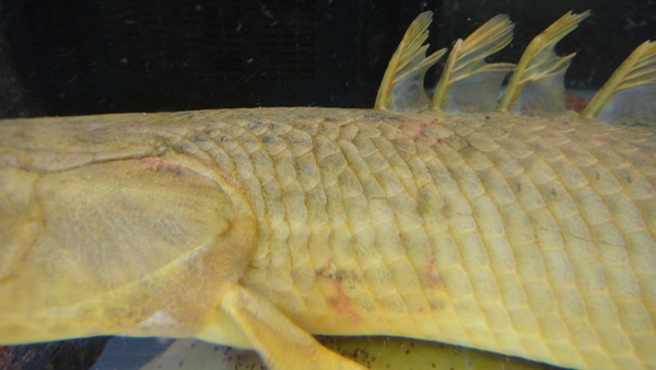 入荷直後のために色とびしていますが、落ち着けば体色も濃くなり模様も出てくると思います。