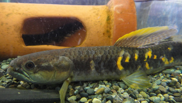 奇妙な魚です。シマシマの靴下みたいな魚です。性格はきつめなので混泳には向きません。でもおもしろい魚なのでオススメ!