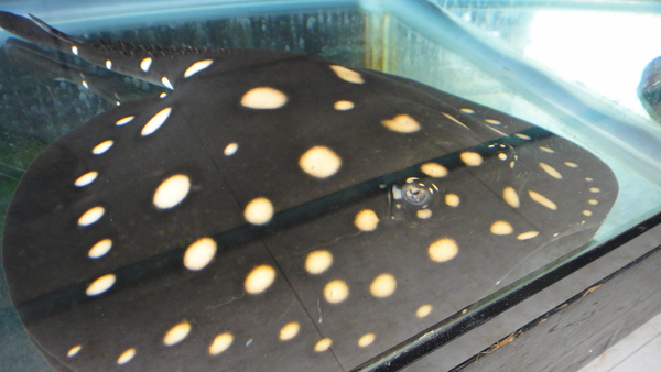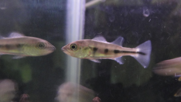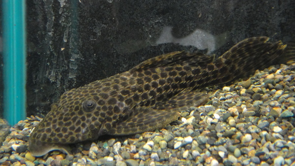 ダイチャです。模様が細かくて派手な個体です。もともと、黒底の水槽に入ってたのでスポットが茶色っぽくなっていますが、白底の水槽やクリアの底でベアタンクの水槽で飼育すればスポットの色もクリーム色になってくると思います。そうすればかなりキレイな個体になると思いますよ!!餌はキャットでOKです!