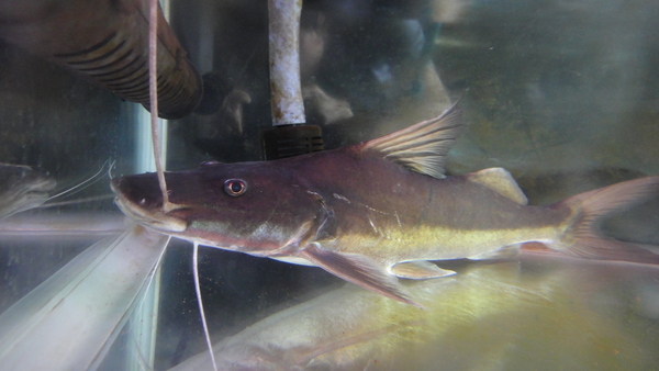 最近ブラジルのピライーバは滅多に輸入されません。入ってくるのはペルー産のレオパードピライーバだけです。以前はピライーバとレオパードピライーバは同種であり生息域が違うことによるバリエーションとされていましたが、現在では別種とされ、最大サイズもピライーバの方がはるかに大きく、体型や模様にも違いが見られます。今では高価なナマズですがとてもかっこいい素晴らしいナマズです!上段の画像です。