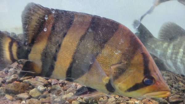 いいサイズのシャムタイガー(本ダトニオ タイ産)が入荷です。現状現地からの入荷が途絶えてしまい幼魚の入荷が見込めない状況ですから、今後もどんどん入手難になり価格も高騰していくことが予測されます。今回はお客様からの下取り個体のため大特価でご提供いたします。