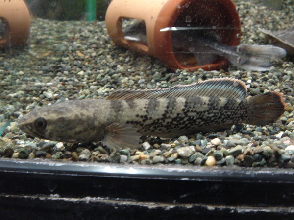 スチュワートのバリエーションでしょうか?背びれ、尾びれのエッジが赤く発色したスネークヘッド。体色はスチュワートのような青っぽさがありません。詳細不明。