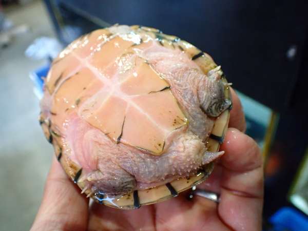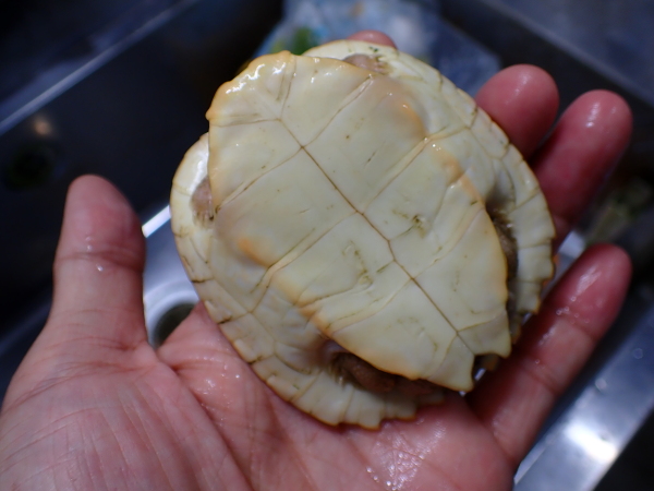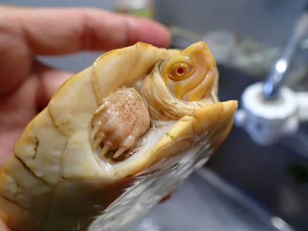 この個体甲羅のコケがすごいです!緑毛亀とか蓑亀のレベルでふさふさでマリモみたいです!コケを洗い落すかそのままにするかは買った人次第ですが、ぜひこのままコケも一緒に育てて欲しいですね!なんか縁起良さそうですしね。ドロガメ類はオスが少ないことが多くノドジロもオスの方が全然レアです。なのでメスをお持ちの方はこのオスで繁殖狙って下さい!縁甲板にわずかに甲欠けありますがワイルド個体なのでご勘弁を・・・。ホオアカドロガメみたいな赤い顔しててキレイです!