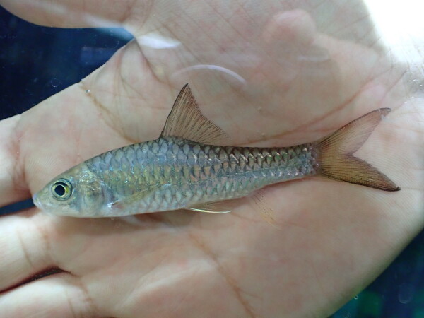 この名前で輸入された魚は過去にも何度か入荷したことありますが、前に来たのはもっと大きいのだったからちゃんと金色ですごくキレイな魚でした。でも今回のは小さいからか現状では全然金色じゃないです・・・。まぁ前に来たのとこれが同じ種類なのかも分かりませんけどね・・・。でも十数匹しか輸入されてないと聞いたのでとりあえず試しに1匹だけですが仕入れておきました。普通のアロワナカープみたいな魚になっちゃったらハズレですが、金色になったら当たりです!チャレンジャーな方ぜひどうぞ!中段右の画像です。