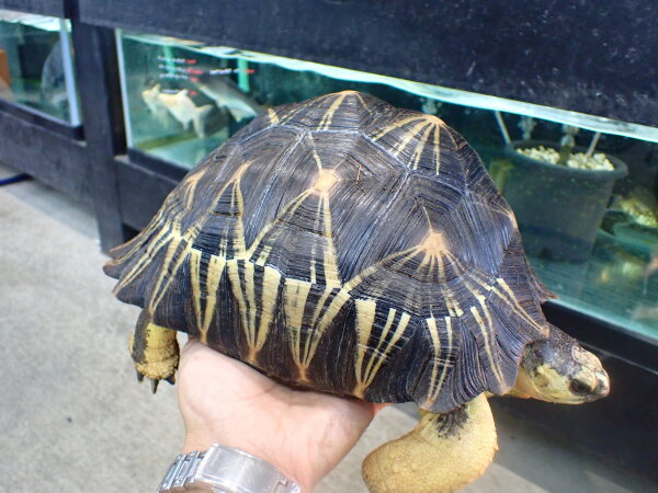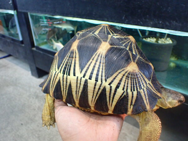 ホウシャガメは当店では今回初めて入荷したんですが、ホウシャガメってやっぱり実物見るとすごくキレイでいいなぁってなりますね。