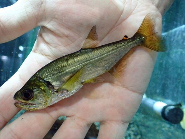インドから謎のハマギギが入荷しました。ベンガルハイフィンシャークキャットの名前で入荷しましたが、確かにハイフィン。背ビレ高くてカッコいいです。問屋からは純淡水で大丈夫と聞いていたので店頭では純淡水でストックしていますが状態は良好でえっさも人工飼料を食べています。値段もそんなに高くないですし、カッコいいのでオススメです!複数匹入荷していますがそんなに多くはありませんのでこれ系のがお好きな方はお早めに!上段の画像です。