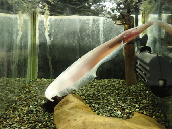 少し前に入荷したアラグアイア産の青いシルバーアロワナのうちの1匹ですが、斜め泳ぎしているので半額にします。斜め泳ぎのため目垂れもありますが普通に泳ぐようになればば目垂れも治るかもしれません。広い水槽で混泳させたり回りを全部囲った水槽で飼ったりすれば治ることもありますので、目垂れ気にしない方や治りそうな環境で飼育できる方にはかなりお買い得だと思います。どなたかチャレンジャーな方からのご注文お待ちしております。中段右、左下の画像です。2つの画像は同一個体です。