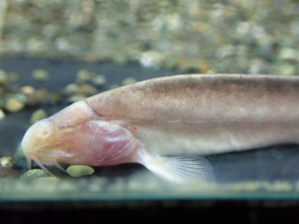 これ初めて見ました!気持ち悪くてすごく良いです!目の退化した洞窟棲のドジョウですが薄っぺらい体型でかなりへんてこりんです。洞窟棲だから低温を好むのか?ボルネオ産だから高温でも平気なのか??もう全然謎です。こういう肌の魚は低温にして白点出てもイヤだから飼育環境は悩むところですが、とりあえず普通に飼ってみよう。5匹入荷しましたが、ホームページ載せる前に売れてしまった個体もいて、あと1匹は体曲がったB品だしで、残りは少数です。こういう変態的な魚お好きな方はお見逃しなく!追記:水温27度でイトメあげたらバクバク食べました。どうも飼育は難しくないっぽいですね。中段の画像です。