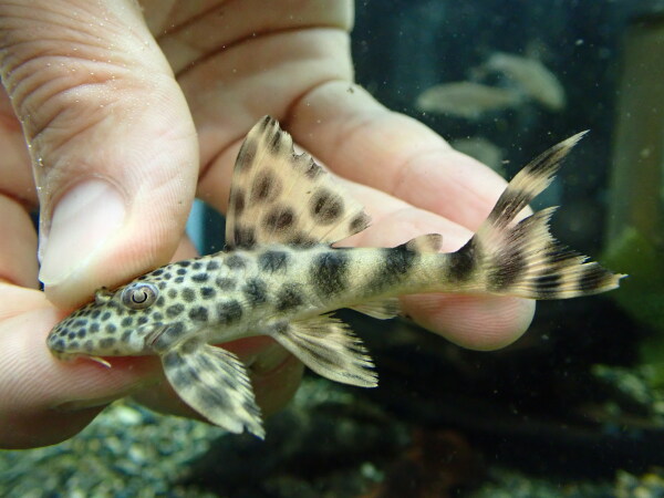 これ好き!キレイな模様とカッコいいシルエットですごく良いプレコです!最近は大きいの来ませんが、前はこれの20cm以上あるデカいのが輸入されたりもしてたんですよね。デカいのかっこいいのでぜひ大きく育ててあげて下さい!中段左の画像です。
