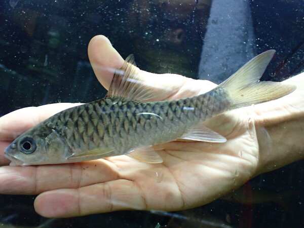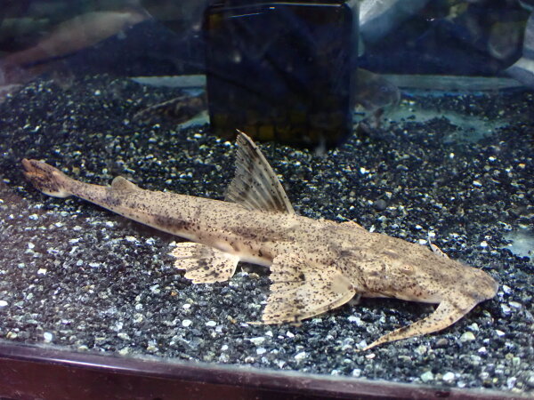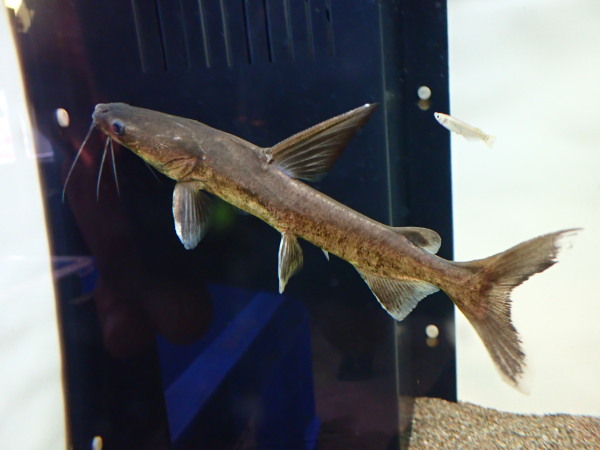 激レアなハマギギ入荷しました!薄く長い特徴的な顔つきの珍しい汽水性のナマズ。もともと入荷は少ないですが、それでも来たらガリガリだったり鼻先ボロボロだったりで着状態悪いことが多いんですが今回のは状態良いですよ!まぁ少しは鼻先スレてますがすぐにキレイになる程度ですしこれ位は仕方ないですね。現状では0,2%で塩入れてます。汽水のナマズなのでこの位の塩分濃度は維持してあげてください。左上の画像です。