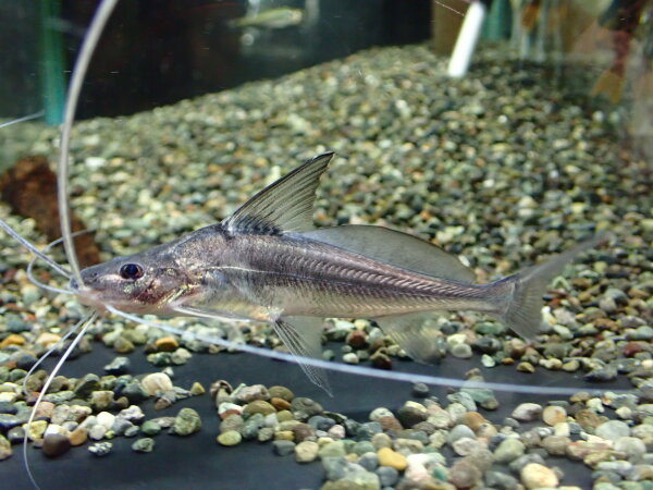 名前の通り背ビレがアンテナのように長く伸びたカッコいいナマズ。大人しいナマズなのであまり激しい魚との混泳は避けた方がいいです。前は良く輸入されてたんですが最近はたまにしか来ませんね。一度環境に慣れて落ち着いてしまえば普通に飼えるナマズですが、ややデリケートな種類です。でもそういうところがマニアの飼育欲をそそるんですよね!?25日追記:来た時は付いてなかったんですけどね、入荷して一晩ですごい白点。さすがアンテナドラス・・・。というわけで販売は白点が治ってからです。