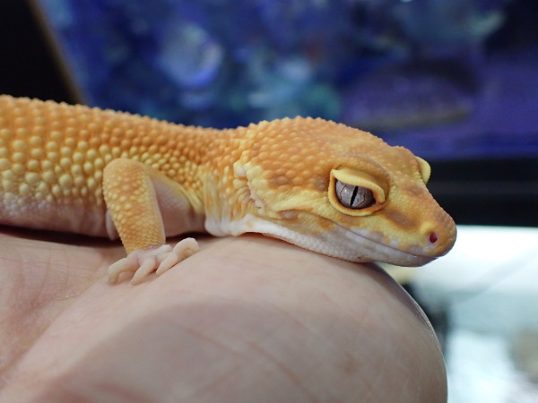 ヒョウモントカゲモドキ ”エレクトリックタンジェリントレンパーアルビノ” 中段右、下段の画像