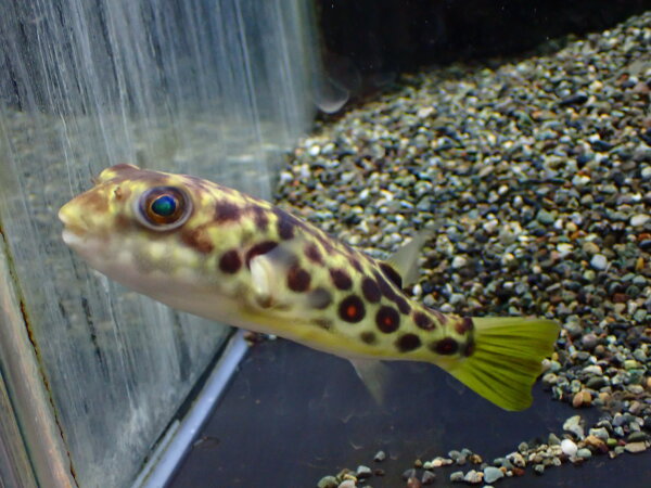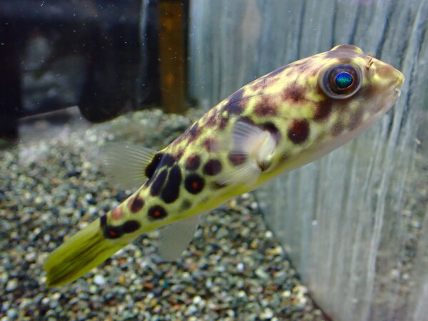 久しぶりのパストゥレイタスです。幻の淡水フグだったのがここ1年位はポツポツ入荷してましたね。でもたぶんまたしばらく来なくなるっぽいです・・・。すごく良い魚なので1匹は在庫しておきたいと思いっていたからなんとか仕入れられて良かったです。よく馴れるし丈夫で飼い易いしキレイな魚なのでオススメです。個人的にも大好きな魚なので売れなければお店で飼っていてもいいかな。上段の画像です。2つの画像は同一個体です。
