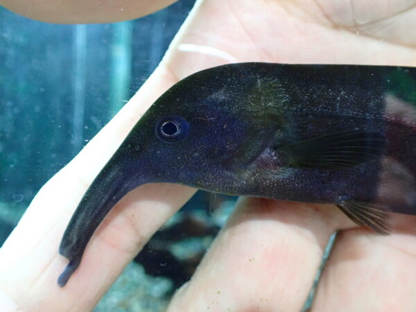 小さめのもいます。少しヒレ先欠けてますがすぐに再生しますのでご安心下さい。吻が細長くて良い顔してます。下段の画像です。2つの画像は同一個体です。