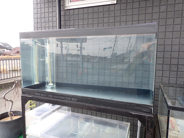 アクリル水槽1200×600×600h(板厚10mm)、鉄製台1210×615×1100h、6層式アクリル濾過槽1000×600×500、サンソーマグネットポンプ、ろ材のセットです。全体的に使用感はありますので特価で販売します。アクリルの透明度は水をはればまだいける感じ。黒いバックスクリーンを貼っていたため水槽の帯などにシールやテープの跡が残っています。シール剥がしなどで磨けばキレイになると思いますが現状はそのままです。濾過槽はアクリル製の6層式で大きくてしっかりしていますが一部にクラックが見られます。当店に入荷する直前まで普通に室内で使用されていたものですし、今も水を入れていますが水漏れなどはありません。ただし中古品になりますので一切の保証はできません。ご理解の上でお願いします。発送はできません。取りに来られる方でお願いします。上段、中段、左下の画像です。2月20日追記:置いてある場所を空けたいので急遽大幅値下げです。