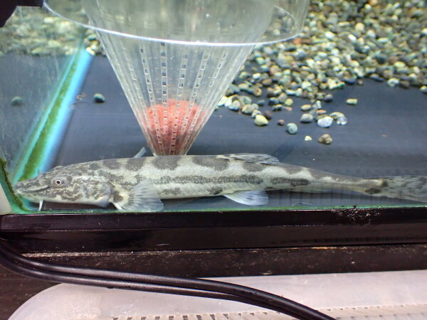 最近アルビノとかも輸入されてる中国産の大型になるドジョウ。うちは仕入れなかったけどアルビノも思ったより高くなかったし何件かの問屋さんで複数匹輸入されてたりしたのでもしかしたらこれ現地でブリードしてるかもっしれませんね?でもそのわりに飼育難易度は高めではっきりとした飼育方法が確立されていないというか、情報が少ないですね・・・。おそらく低水温を好むと思われますが、油断するとすぐ白点出たり肌荒れというか粘膜をたくさん出したり・・・。なんとも掴みどころが無いというか、飼育方法に謎の多いドジョウ。店頭では水温25度でストックしていますが今の所状態は良さそうです。我こそはと言う方、ぜひ挑戦してみてください!左下の画像です。