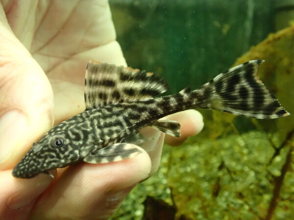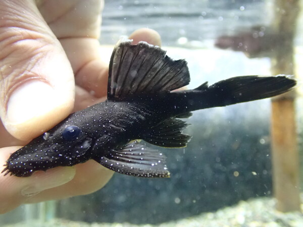 ヒレのエッジが白くなり細かいスポットが入るキレイなブッシープレコ。ブッシープレコの中でも個人的に特に好きな種類なのでオススメです!左下の画像です。
