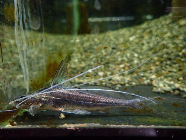 ハイフィンブルーバックキャットで来ましたが違いました・・・。ハイフィンブルーバックキャットで来てこれがくるのはまぁまぁあるある。ハイフィンブルーバックによく似てますが、脂ビレの形が違うのですぐに区別つきます。あと色もハイフィンブルーバックほどは青くないです。でもハイフィンブルーバックと同じ位にレアで、すごくカッコいい良いナマズです。滅多に来ないナマズなのでマニアの方は必見です!あとすでにハイフィンブルーバック飼ってる方のコレクションにもオススメです!入荷は1匹のみです!上段の画像です。2つの画像は同一個体です。