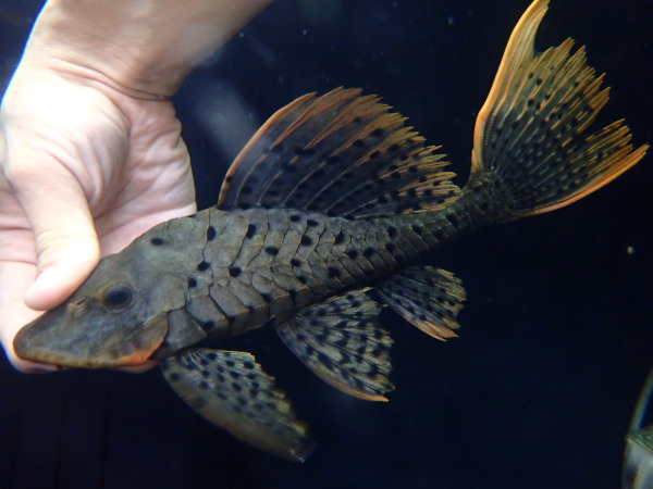 久しぶりの入荷です!これ良いですよ!コケ食べるけど歯が柔らかいからアクリル水槽にもダメージ少ないんです。まぁセルフィンとかに比べたらコケ取りの能力はやや劣りますけどね、それでもしっかりコケ掃除してくれます!見た目キレイで希少性も高いし、コケ取りとは言えセルフィンだとちょっと物足りないんだよなぁ、なんていう方にもオススメ!もちろんコケなんて食べても食べなくてもどっちでもいいし、っていう純粋なプレコマニアの方にもオススメです!中段右の画像です。