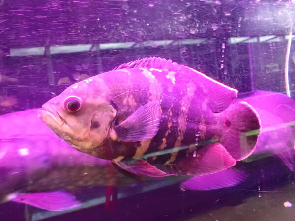 バンド模様のキレイなすごく良い個体です。所々で鱗がブツブツ赤くなってきていますのでこれからどんどんキレイになっていくと思います!混泳による多少のスレはありますがしばらくで治る程度で気になるキズや欠点はありません。ベビーでも1万円位しますからね、このサイズでこれだけキレイな個体がこの値段は超お買い得です!左下の画像です。