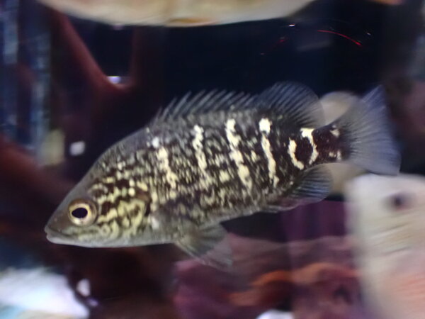 これも純淡水OKです。人工飼料にもすぐ餌付くし、アーチャーフィッシュの仲間の中では大型になる種類とされています。まだら模様がキレイなかっこいいアーチャーフィッシュです!中段右の画像です。