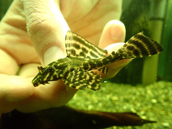 2つの画像は同一個体ですがタイミングを変えて撮影しました。左の画像のようにバンドが消えてる時もありますし、右の画像のようにバンド出てる時もあります。飼育環境や魚の状態によっても体色は変化すると思います。