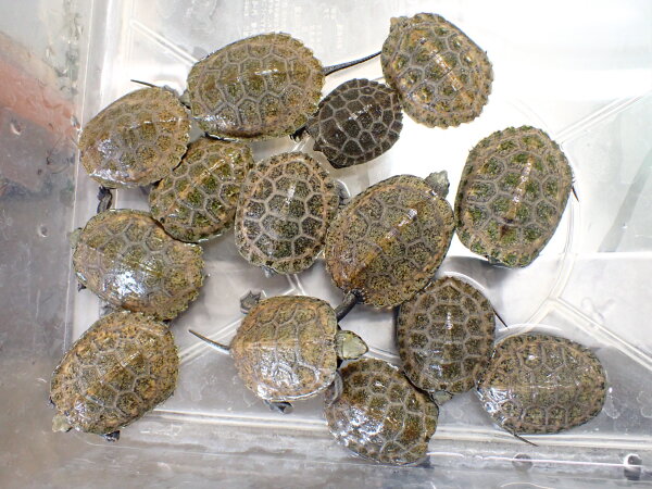 今年生まれのニホンイシガメがたくさん入荷しました。小さいのは甲長4cm位のベビーから大きめだと6cm位のけっこうしっかりしたサイズまで。どれも甲ズレや尾切れの無いキレイな個体です!最近は価格も高騰しておりベビーでもこの値段は超激安なのでオススメです!