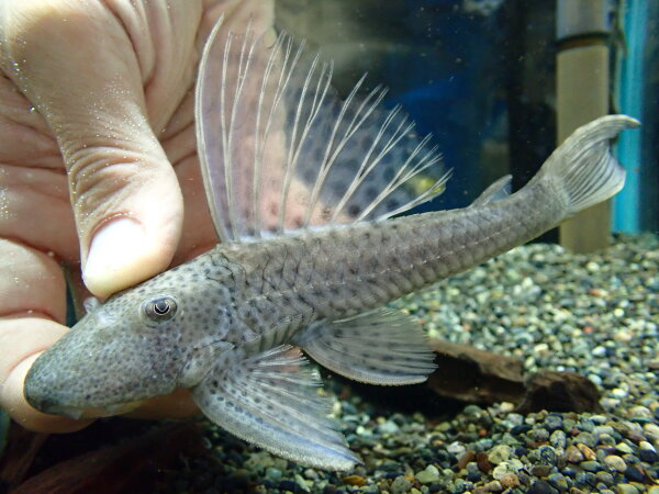前回即売れだったので再入荷!アンジェリカスプレコのような高い背ビレが超カッコいいレアプレコです!これは本当にオススメ!右上の画像です。