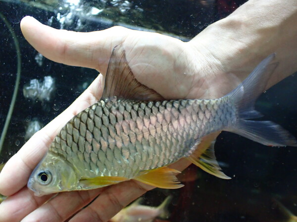 オーストラリア便で入荷したゴマフエダイです。今は灰色っぽい色ですが成魚では赤く発色するキレイな魚。海水から汽水域に分布する魚ですが、純淡水域まで入ることもあり淡水への適応力はかなり高いです。店頭でも純淡水でストックしていますが今の所問題無いです。ただしpH高めの新しめの水がいいですね!