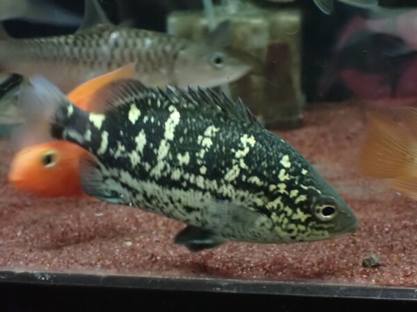 厚みのあるがっしりした個体が来ました。最近輸入されてるカルボナンダスにしてはやや大きめですね!こいつ汽水なイメージありますが純淡水で全然OKです!餌も人工飼料バクバク食べるので飼い易いですよ!中段左の画像です。